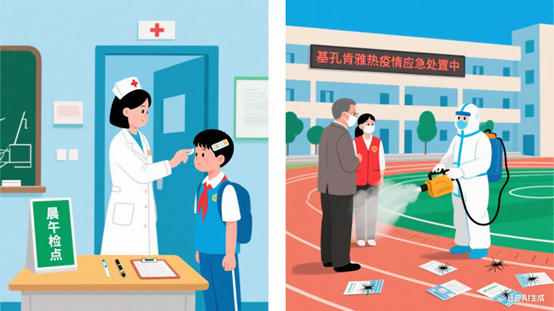 1.通过健康教育课程、宣传栏、班级群等,普及基孔肯雅热防控知识;