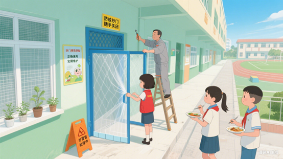 教室、办公室、集体宿舍使用纱窗,并检查纱窗完整性。