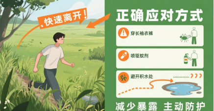 3.尽量避免在蚊虫活动高峰(上午6~8点、下午5~7点)于树荫、草丛、竹林等户外微暗潮湿处长时间逗留;