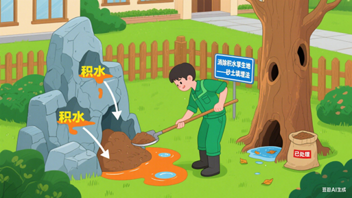 6.花园假山、树洞、竹筒等积水,可用砂土填埋。