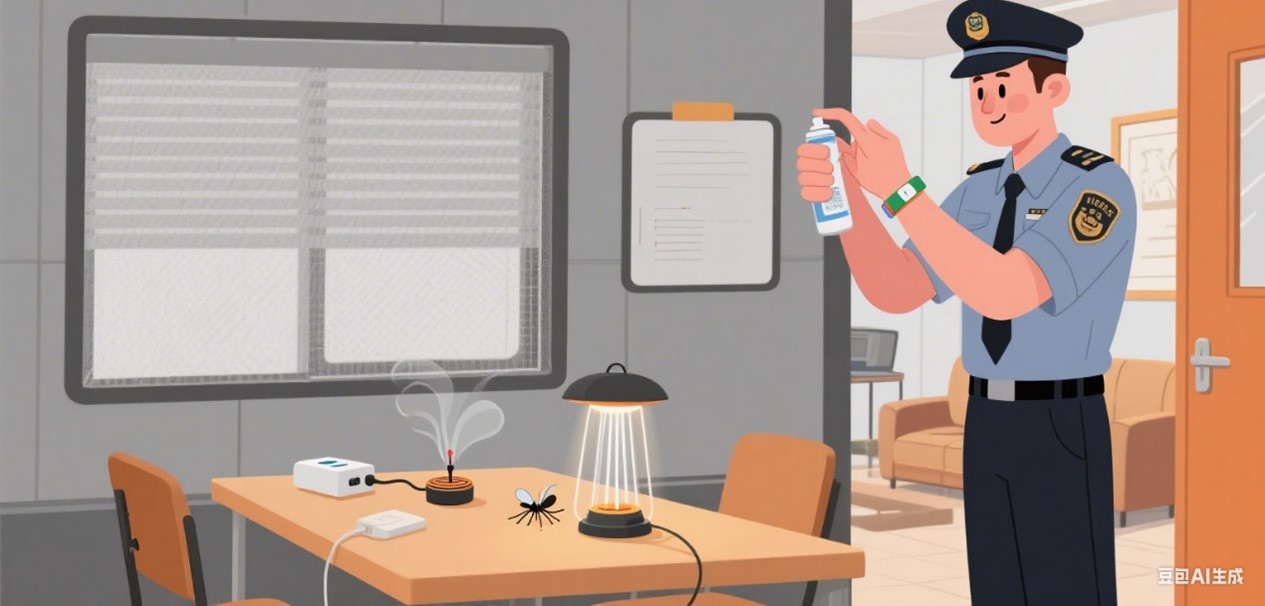2.保安室、休息区等可加装防蚊纱网,配合灭(诱)蚊灯或蚊香驱蚊灭蚊,给保安、门童等配发驱避剂;