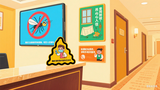 3.酒店客房内可安装纱窗,配备蚊香或家用卫生杀虫气雾剂、驱避剂等,必要时安装蚊帐;