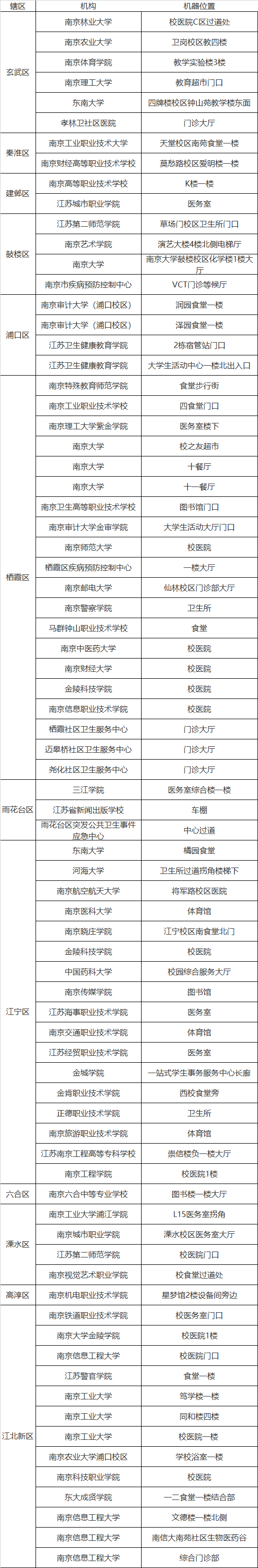 南京市HIV自检服务包申领机器位置(2026年更新)