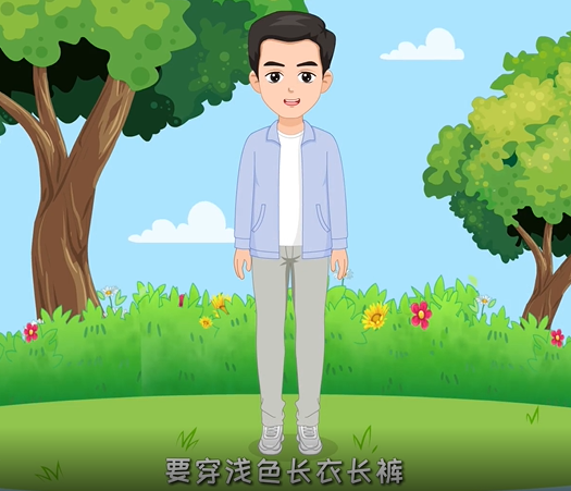 l 穿浅色长袖长裤和包裹性鞋子,裤脚塞进袜子里,减少皮肤暴露;